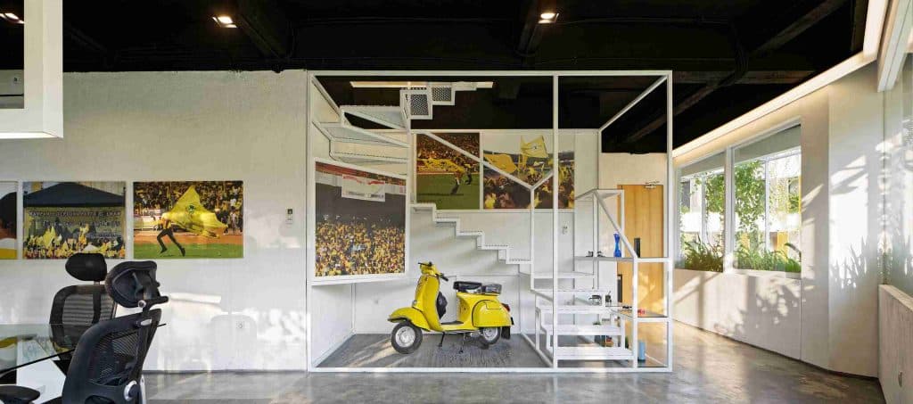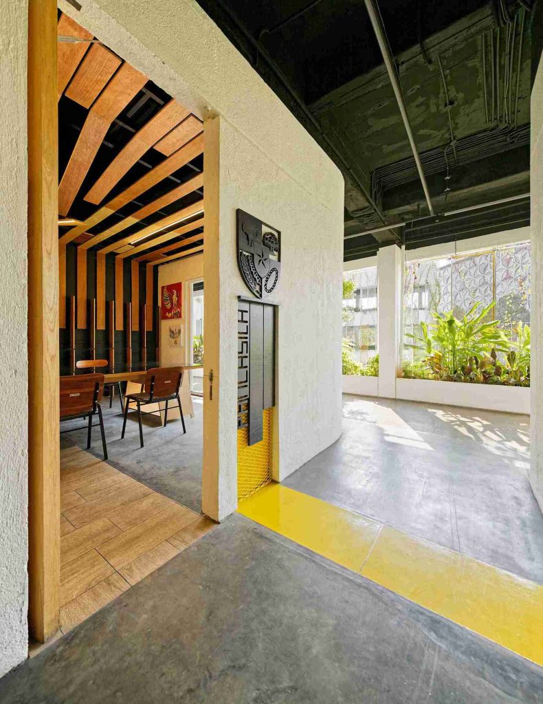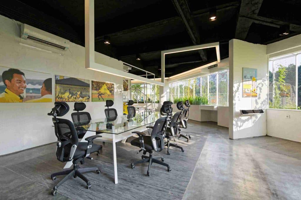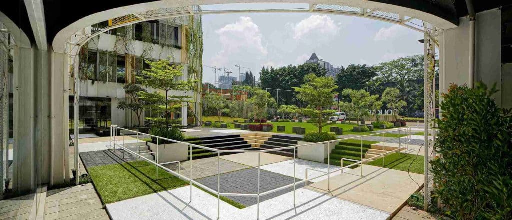 Taman, pencahayaan alami, dan ventilasi silang menjadi elemen utama untuk menciptakan ruang kerja yang sehat dan berkelanjutan.