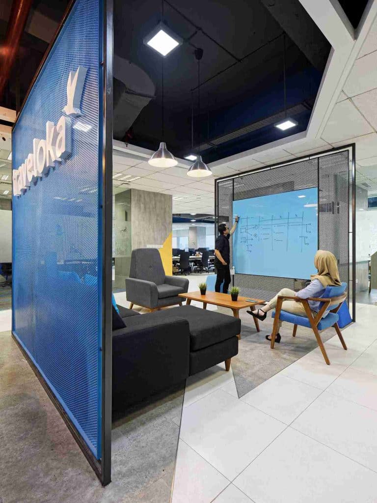 Dengan pendekatan holistik — dari pola, warna, hingga ruang istirahat — DELUTION berhasil menjadikan kantor Traveloka sebagai representasi dari semangat inovasi dan manusia di pusat desain.